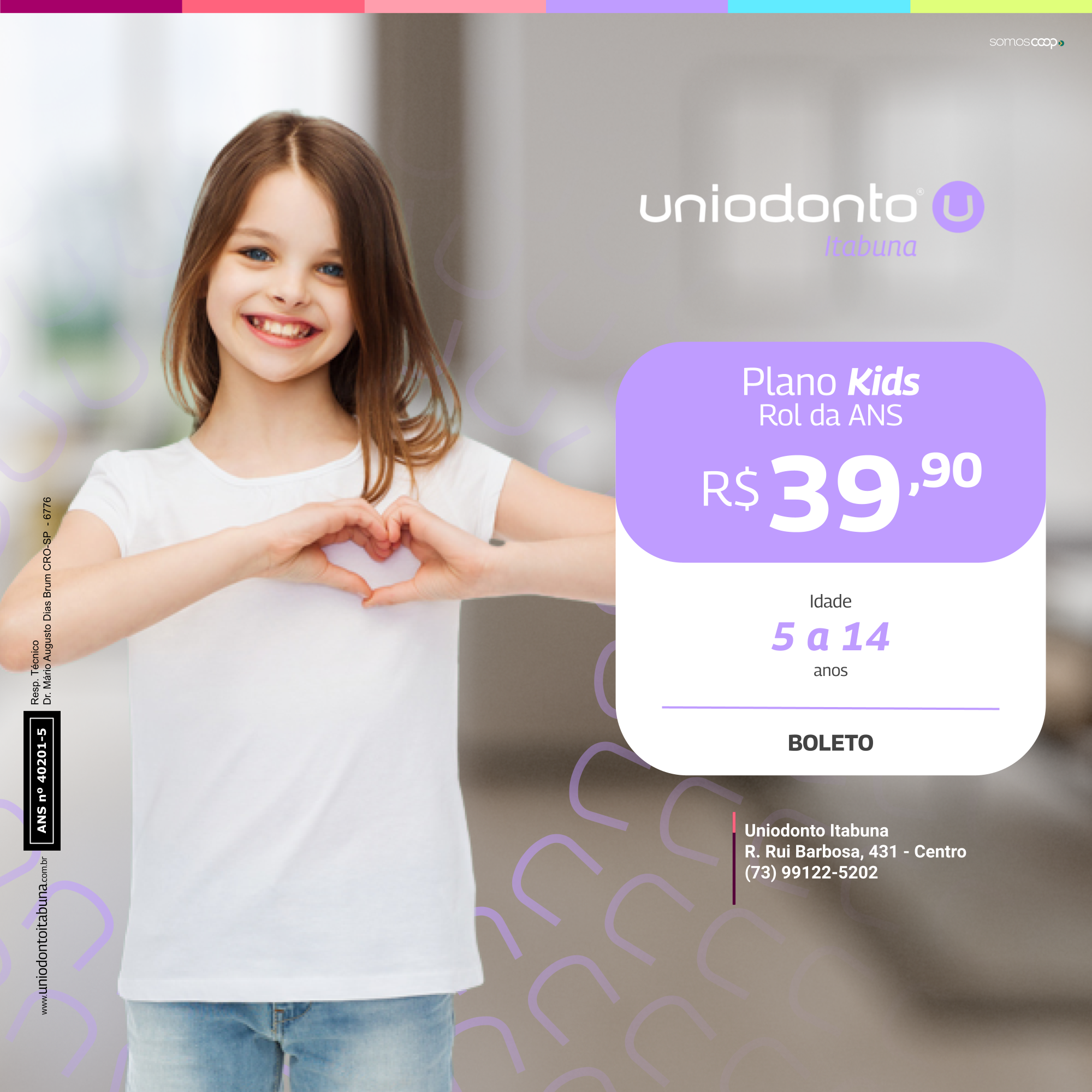Plano especial para idade de 5 à 14 anos, desenvolvido com base no ROL de procedimentos da Agência Nacional de Saúde Suplementar (ANS). Com ele, você pode contar com uma série de procedimentos, incluindo consultas, exames, limpezas, restaurações, tratamentos de canal, extrações, entre outros.
